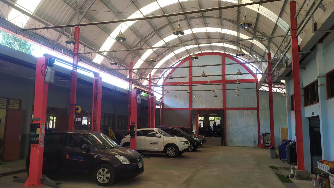 Ruang praktik Otomotif dilengkapi dengan media pembelajaran dan Kendaraan berbagai Merk seperti Toyota, Suzuki, Nissan, Isuzu, Hino, Daihatsu,Mitsubishi, UD Truck. Ruang praktik juga dilengkapi dengan berbagai peralatan bengkel standar seperti : Mekanik Tool Set, Four Post Lift, Two Post Lift , Scissor Lift, Spooring 3 dimensi, Balancing, ATF Exchanger mobil matic, Scanner Mobil EFI, Gas Analyser, Recycle AC Mobil, Tyre Changer dan peralatan SST.